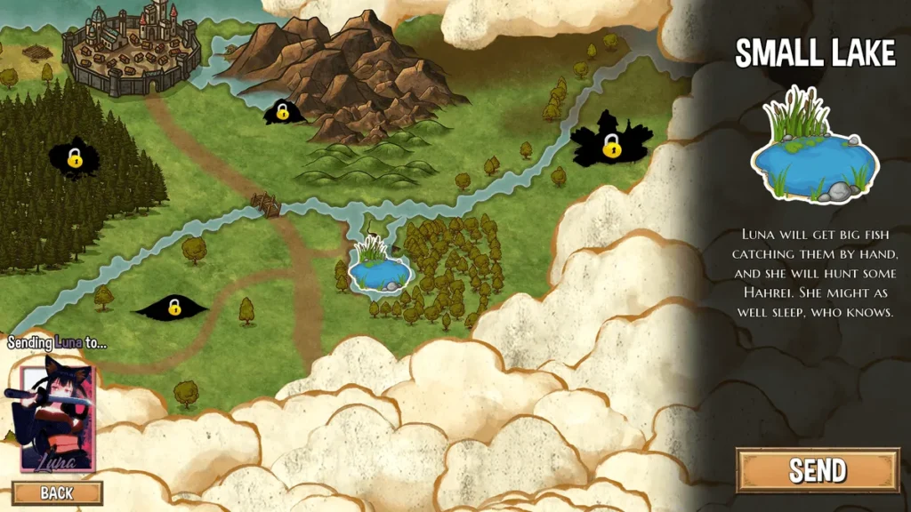 For example, Lucy’s special ability allows her to gather Shinlies from the Lake, a rare and valuable alchemical component. Sending her there when the task is available is always a priority for magic item progression.