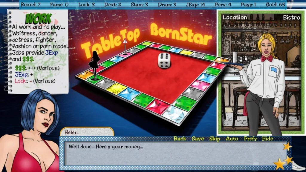 In conclusion, TableTop BornStar offers a unique gaming experience by combining tabletop mechanics with the engaging narrative of a visual novel. Its setting in 1990s Hollywood adds a layer of nostalgia and glamour, making it a compelling choice for fans of adult visual novels. As the game continues to evolve, it’s exciting to see how it will further immerse players in its world of showbiz and intrigue.